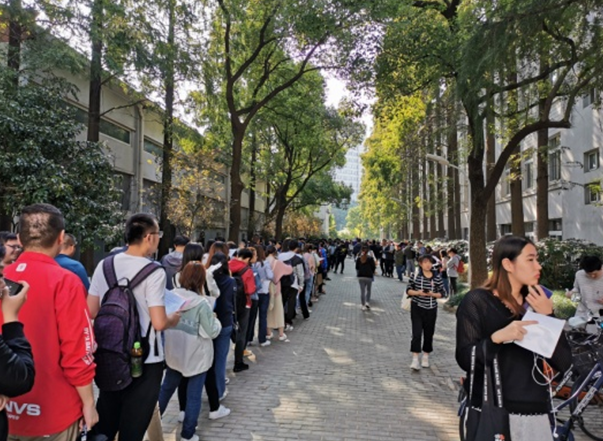 本次考试学校首次启用集约化考场,通过人脸识别信息化入场、动态考场编排、动态考务材料生成等手段,减少考场安排,减轻考务工作量。在上海市教育考试院的指导下,在学校保卫处、后勤、教育技术中心等部门的大力配合下,考生入场秩序井然,集约化考场期望达到的效果非常明显,武东路三教平均节约了35%的考场资源。